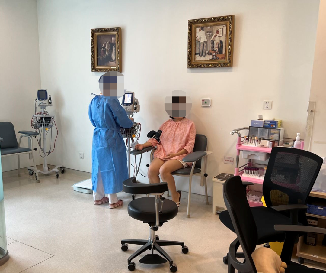 前台讲一下,护士就安排量血压、验小便,然后就领进诊室,主诊医生准备做B超了。