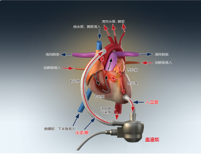 以左心室辅助装置(LVAD)为例,患者的血液从左心室经血管流到血液泵内,泵内的叶轮转动产生离心力,将血液泵出,经出血管流入升主动脉,部分或完全代替心脏功能。早在1966年,美国休斯顿贝勒医学院首次为一名37岁的女性患者移植了LVAD。