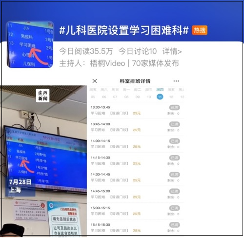 7月份,复旦大学附属儿科医院开设学习困难门诊的消息上了热搜,相关话题在网上引发了热烈讨论。