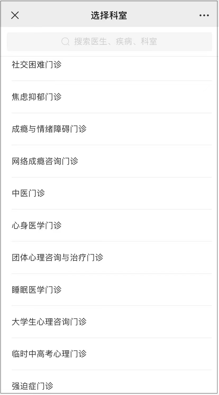 列表里不仅包含上面提到的学习困难门诊,还包括网络成瘾咨询门诊、临时中高考心理门诊、强迫症门诊、记忆门诊等等,其中最为引人注目的就是社交困难门诊,通俗点讲,就是「社恐」门诊。