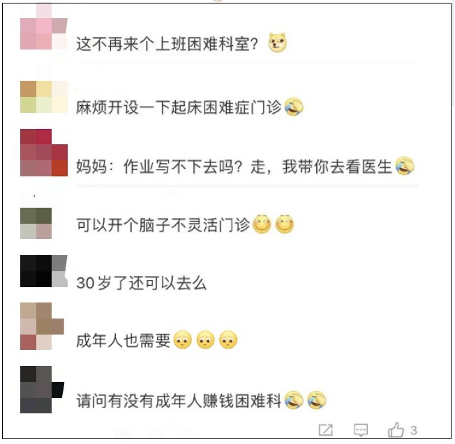 许多网友调侃道:我读书的时候要是有这个门诊,爸妈高低得办个VIP。
