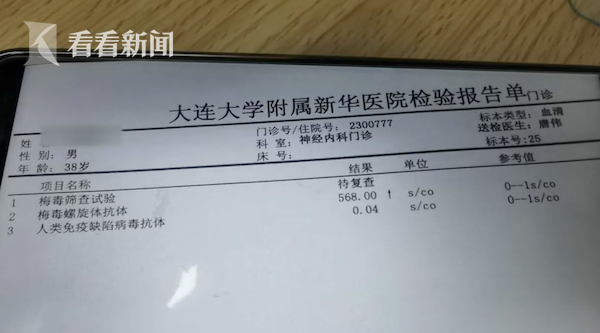 随后这名男子又到专科医院进一步化验,确诊为神经梅毒,又称麻痹性痴呆。