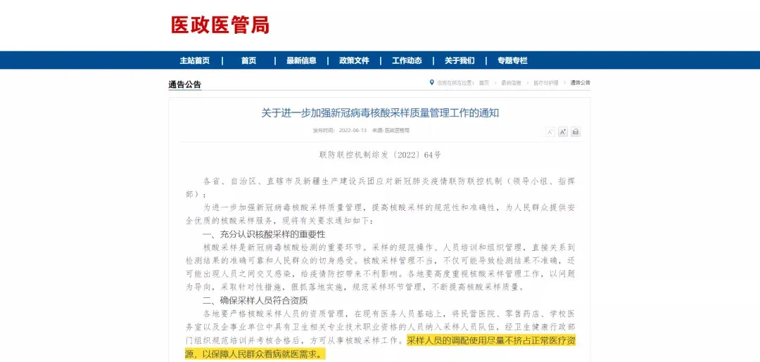 正是鉴于此,今年6月,国家卫健委发布《关于进一步加强新冠病毒核酸采样质量管理工作的通知》,明确要求核酸检测采样人员的调配,尽量不挤占正常医疗资源,让临床医生回归临床,使他们从核酸采样工作中解放出来,以保障人民群众看病就医的需求。