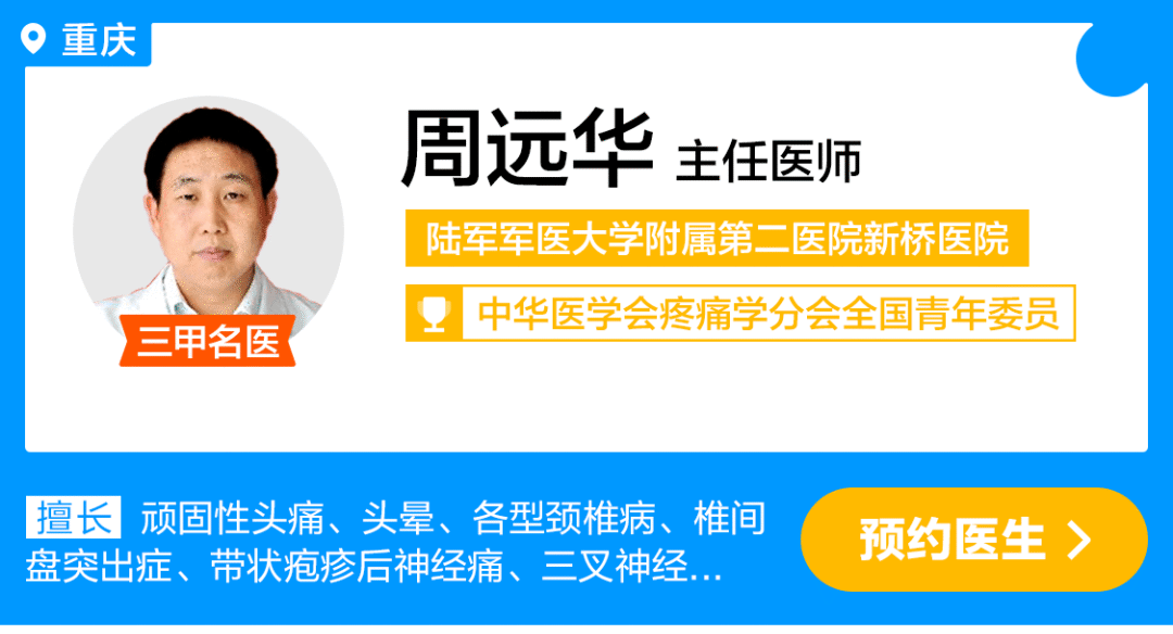 如果大家因带状孢疹经常发生疼痛,可以预约下面的疼痛科的三甲名医,查清楚原因,找到病灶,对症治疗。
