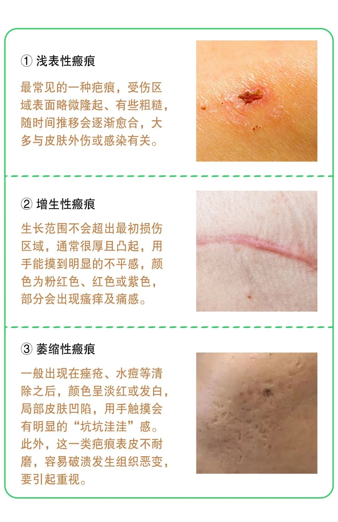 疤痕,在医学上被叫做“瘢痕”,常见的可分为以下几种:
