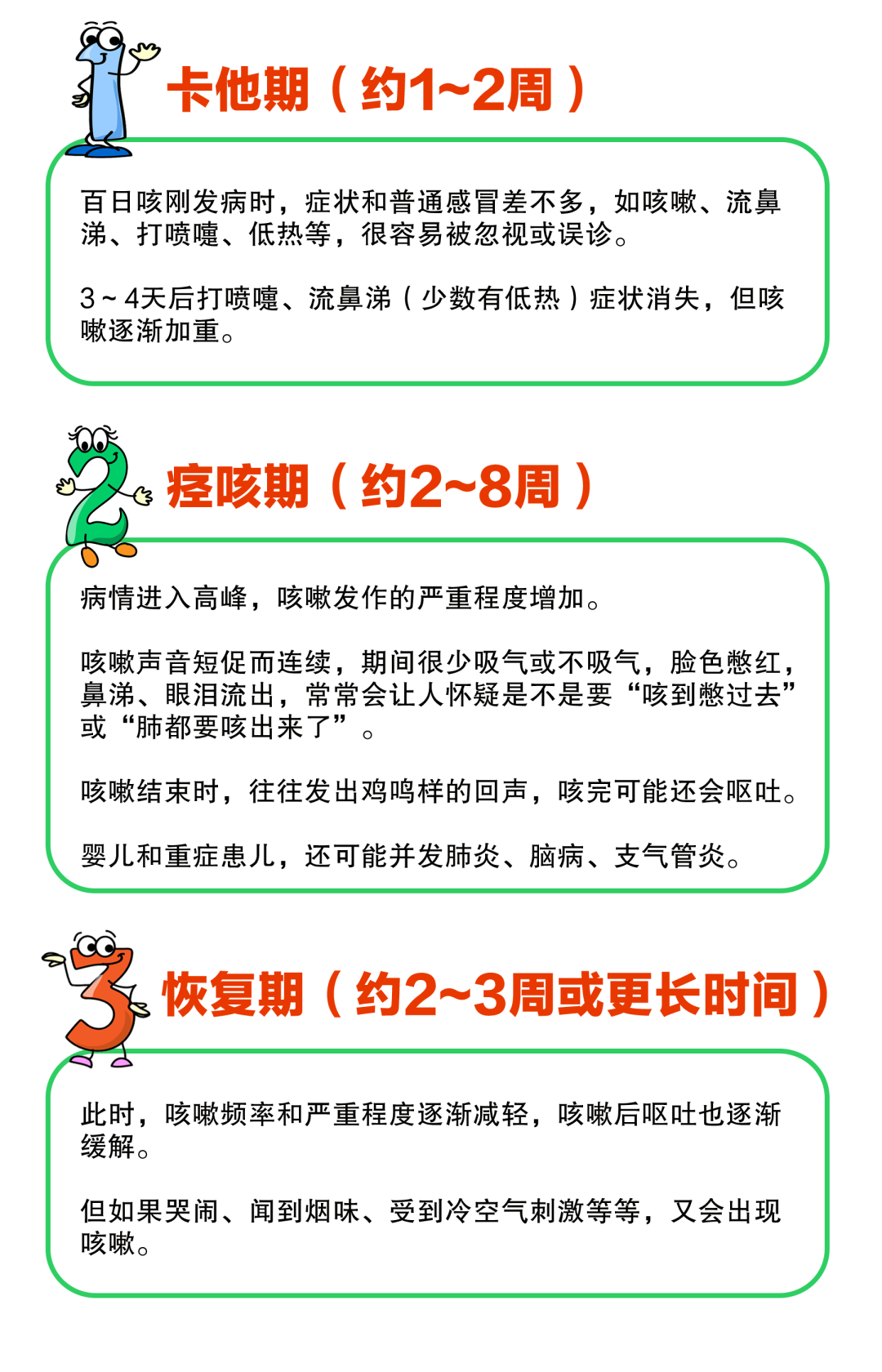 典型的百日咳,病程通常会有三个阶段: