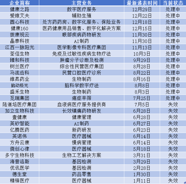 (2023年向香港交易所递表未获批的医疗企业名单)