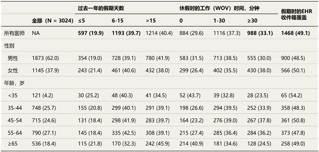 随后,为深入了解医生的休假情况,研究团队随机选取了3128名医生的调查问卷进行研究,其中,3024名医生的调查是有效的。