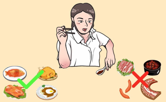 预防建议:每周最好吃鱼2次或300-500克蛋类300-350克,畜禽肉300-500克,日常饮食应该尽量选择瘦肉,比如里脊肉。少吃脂肪含量高的肉,比如五花肉和肥牛。加工肉尽量不要长期吃。