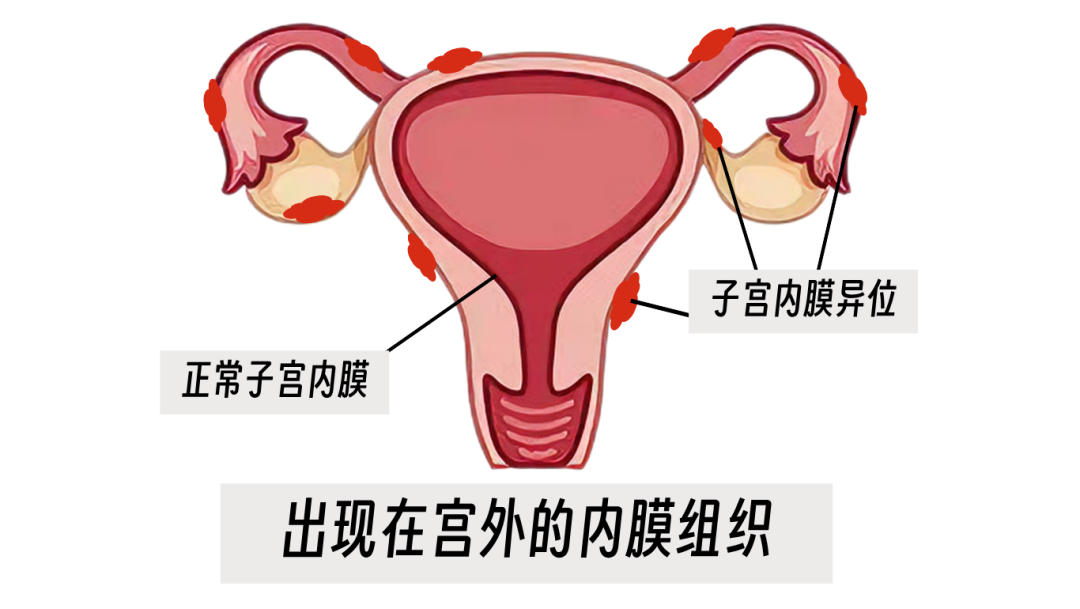 内异症(子宫内膜异位症),简单来说,就是子宫内膜组织长错了地方,本来应该待在子宫里,却“跑”到了卵巢、腹腔、膀胱等地方。