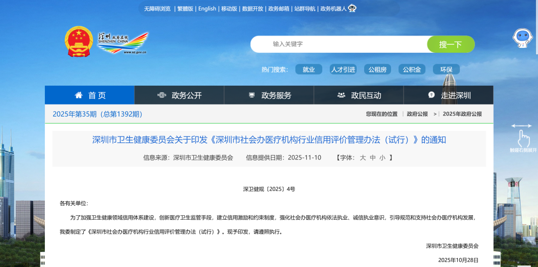 深圳此次推出的社会办医信用监管创新试点,是聚焦信用分级的前沿医改举措,可以说是行业风向标,也这可能是2026年民营医疗机构的“生存指南”。未来大概率将向全国普及,直接改写民营医疗的发展格局,推动行业彻底迈入规范化、诚信化的全新阶段。