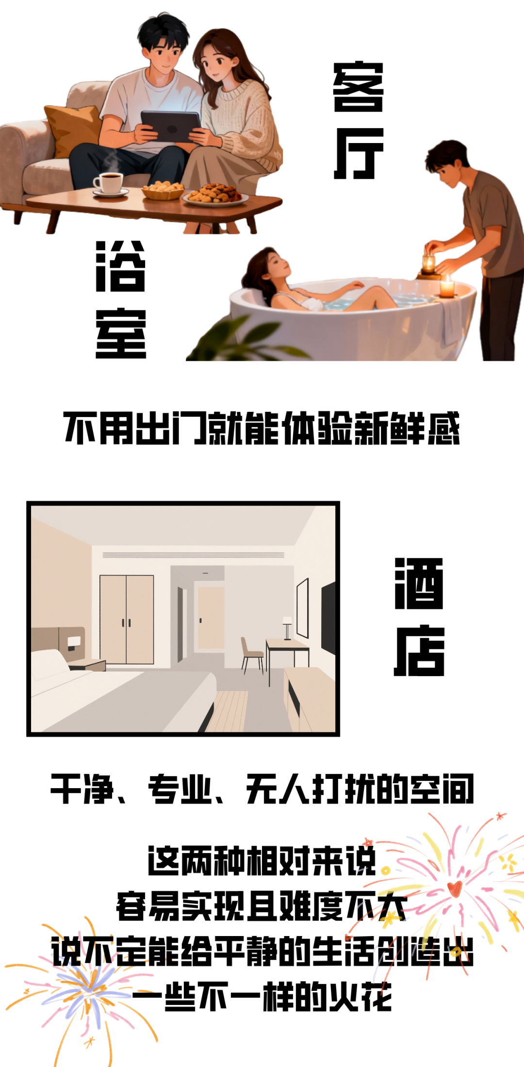 数据告诉我们,渴望新鲜是本能。最好的地点,永远是让你们两个都感到安全、舒适且连接更深的地方。