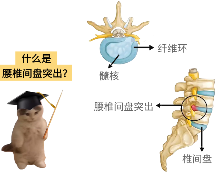 当腰椎间盘向后外侧突出,压迫到从脊髓末端穿出的马尾神经(马尾神经负责掌管人类腰部以下大量敏感神经),人会感觉腿痛腿麻、屁股痛。严重的情况下,还会尿不出来、硬不起来!
