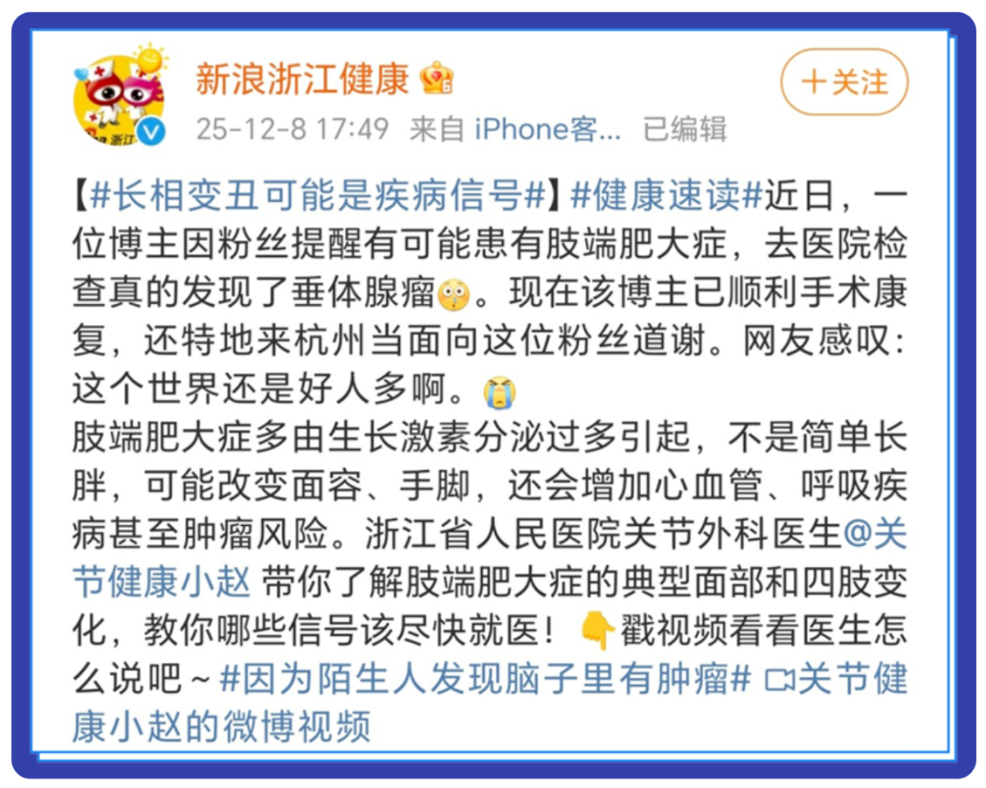 有些肿瘤或重大疾病不会直接在皮肤长东西,而是悄悄改变五官形态,让脸慢慢“变丑”。