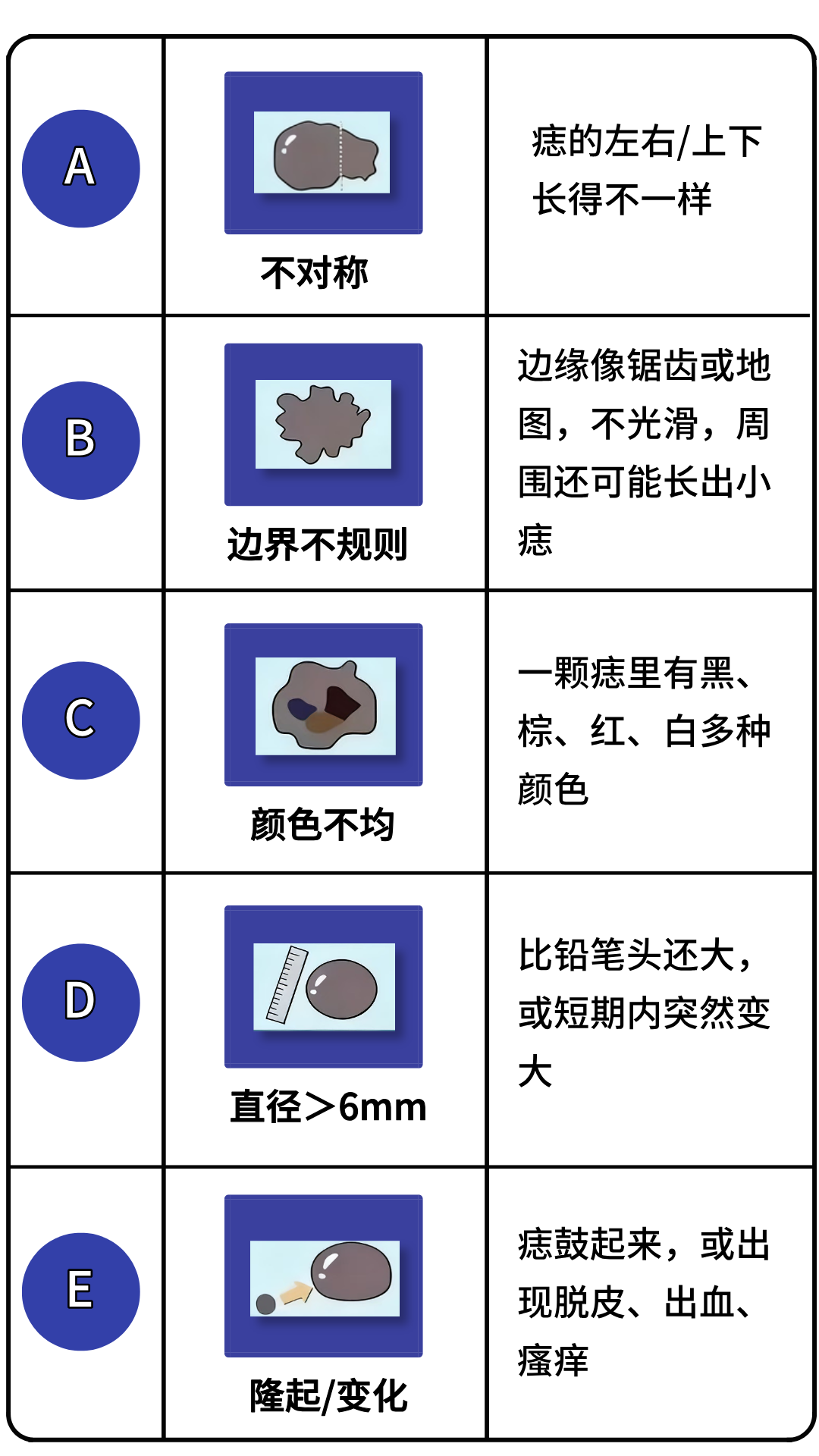可就怕那种在半年内突然变大的痣,这很有可能是“皮肤癌之王”——黑色素瘤的症状。