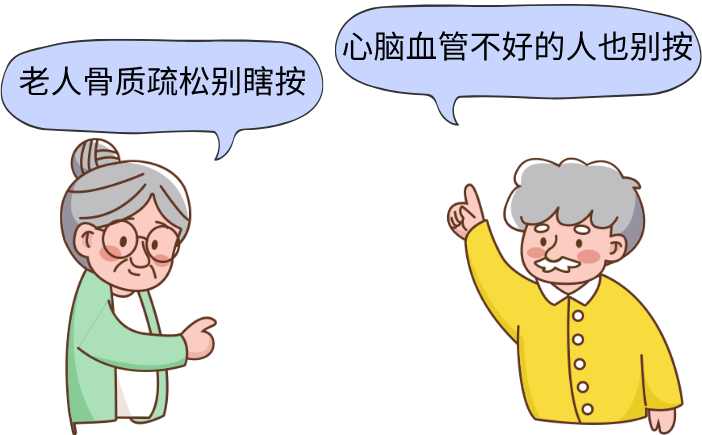骨质疏松症患者:机械力度不分轻重,可能导致老人悄无声息地骨折。