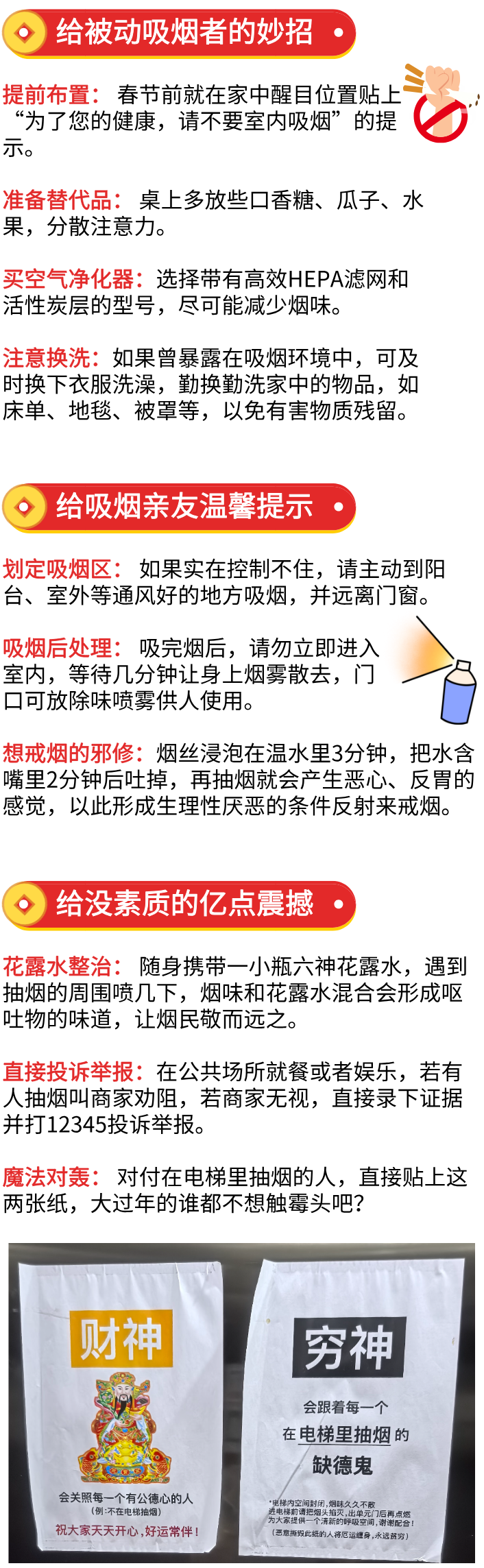 春节是团聚的时刻,不是烟雾缭绕的时刻。保护自己和家人免受二手烟危害,需要花点心思。