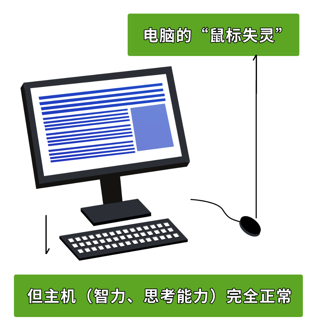 简单来说就是,想做的动作做不到位,但想的事情一点不差。