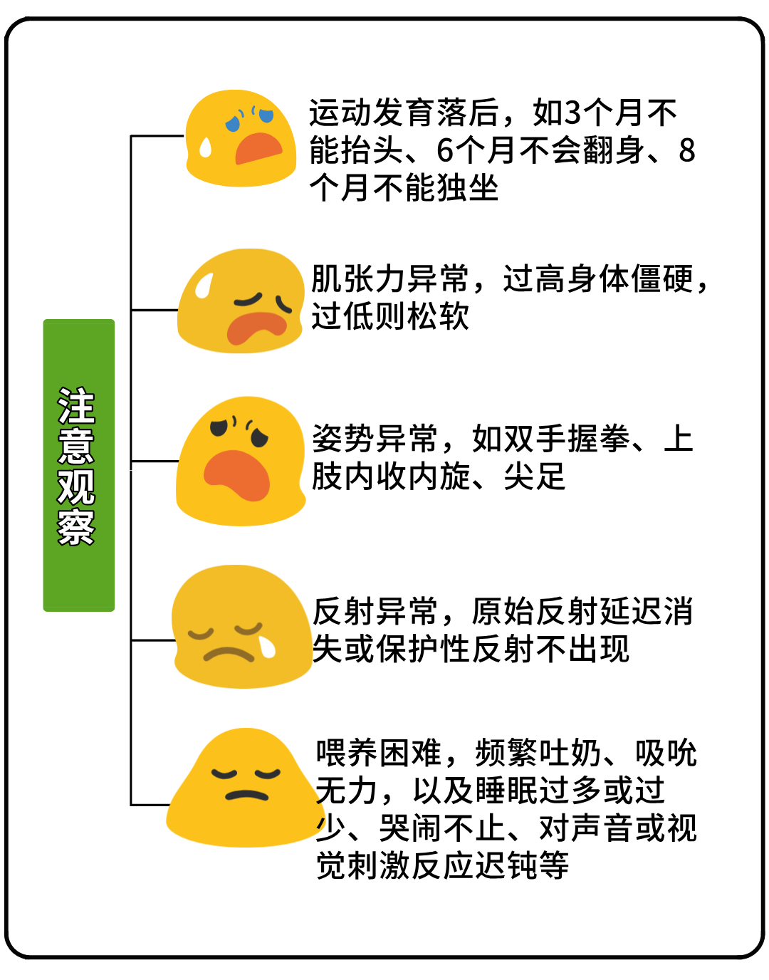在宝宝出生后1个月内,如果发生严重感染、脑部外伤导致的脑损伤等,或者像小糍粑这样出现严重的病理性新生儿黄疸没有及时治疗,也可能引发脑瘫。