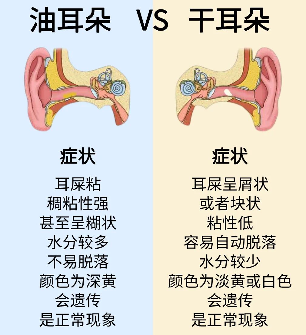 有人耳屎是干的,这种叫“干耳”;也有人耳屎又油又湿、黏糊糊的,就叫“油耳”。