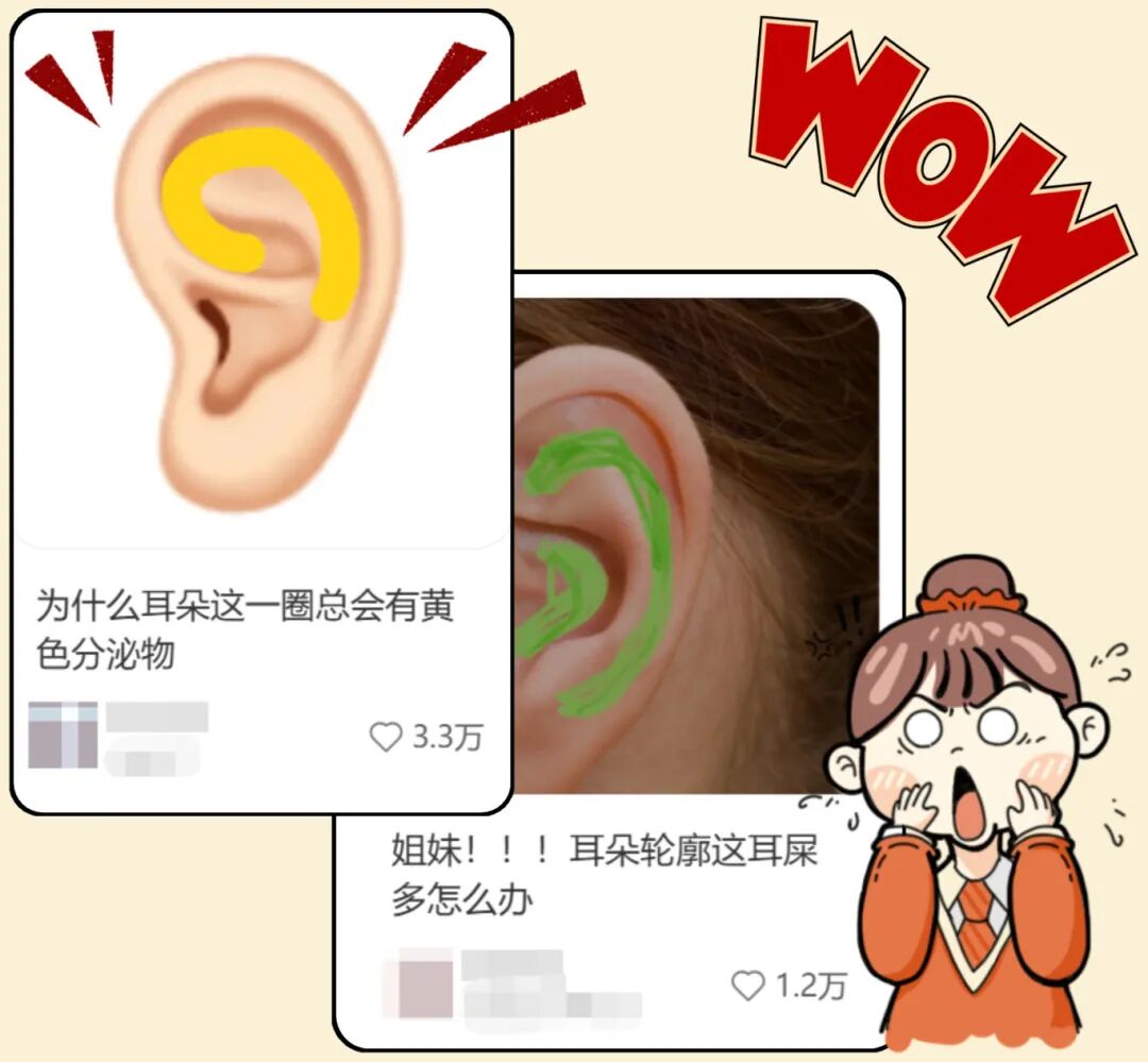 耳廓上这些黄色分泌物,看着很像耳屎,于是不少人就以为它也是耳屎。