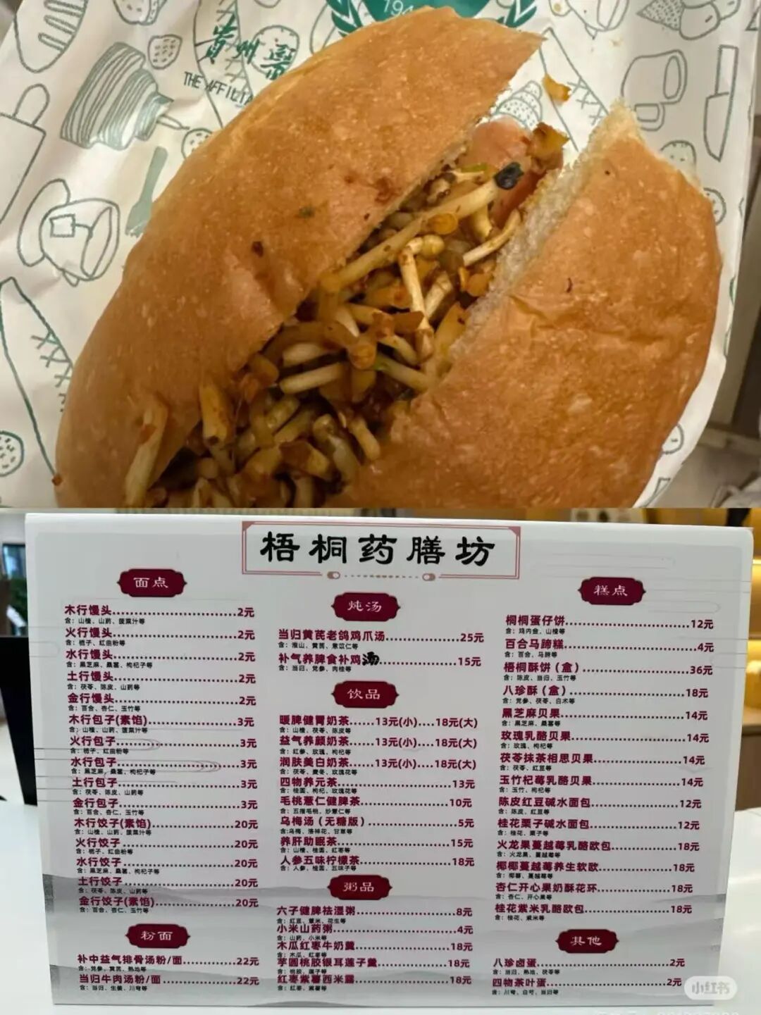 天津中医药大学第一附属医院也在门诊大厅开设 “药食坊”,主打养生欧包,菜单按功效分为低脂健康、补气填元、健脾祛湿等系列,单款售价18-28元不等,开业三年持续受关注。 还有医院正结合地域特色推出专属中药面包。贵州医科大学附属医院食堂将当地标志性食材折耳根(中医认为其可清热解毒)融入面团,6元一个,限购两个;深圳罗湖中医院的“梧桐药膳坊”则针对本地湿热气候,研发茯苓薏米面包,兼顾祛湿理念与松软口感,销量稳居前列。 ![]()