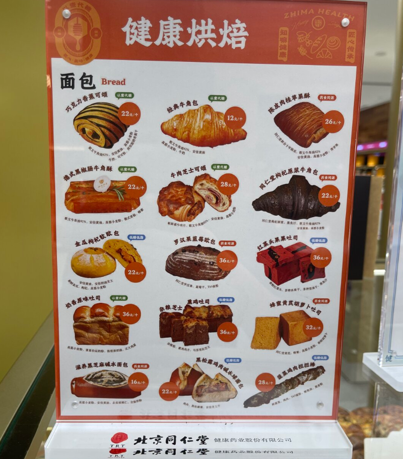究其原因,深圳店开在竞争激烈的商圈,周边有泸溪河、鲍师傅等成熟品牌,以及各类网红甜品店,而“四气五味”未能凸显差异化优势,最终在混战中难以立足。 更多的是存在很多行业的共性问题,最突出的是:养生的噱头撑不起产品力,难以留住回头客。 面包中的中药成分存在感微弱,添加量仅1%-3%,远低于中医临床有效剂量。比如如茯苓每日需10-15 克,一个面包中可能仅0.5 克。“用量过多会影响面包成型,还会影响口味,这些养生药材更像是调味剂,”一位从业者坦言。 ![]() 再加上经过高温烘焙后,部分活性成分会流失,且中医讲究辨证施治,批量生产的中药面包显然无法实现 “一人一方”,难以达到养生功效的预期。 受限于药食同源目录,约70%的产品集中使用黄芪、茯苓、枸杞等少数药材材,导致产品同质化严重,比如多数品牌都有枸杞吐司、茯苓司康,口味远不及普通烘焙店丰富。 ![]() 价不配位也劝退不少消费者。单个面包售价比周边普通烘焙店贵50%-100%,同仁堂部分面包甚至单价高达52元。消费者虽愿为养生买单,但当发现高价购入跟普通的面包没两样,便会认为“不值这个价,不会再买了”,使中药面包失去面包作为高频主食的核心优势。(PS:去医院买中药面包,不能刷医保!!!) ![]() 数据显示,超60%的消费者因“中药+面包”的新奇概念尝试购买。一些机构因为这种尝鲜式消费,客流量开业即巅峰,但很快就倒闭了。