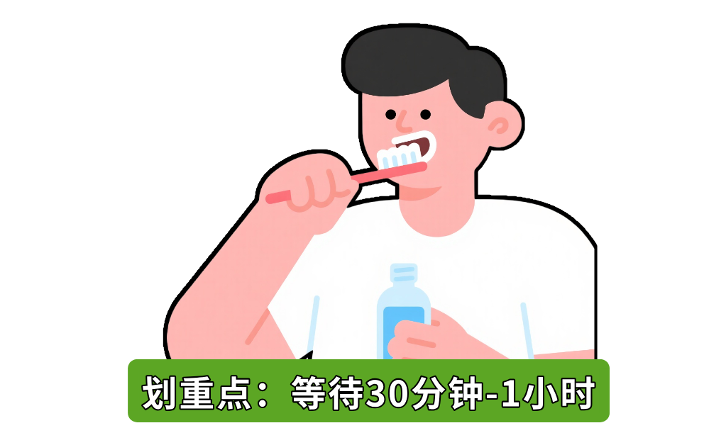 建议刷完牙后等待30分钟到1小时,再用漱口水。