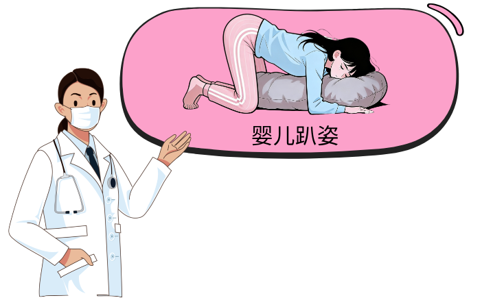 痛经加剧的时候可以尝试婴儿趴姿,也就是跪坐后保持头低臀高的姿势。