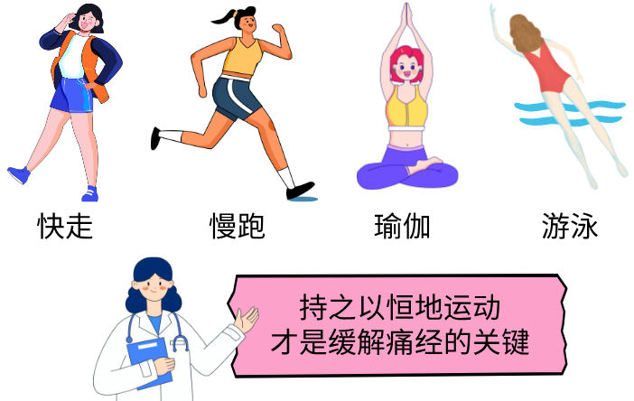 运动能促进血液循环,释放内啡肽,降低前列腺素水平。