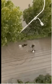 人们早已无法直立行走,只能在洪水中奋力泅渡。