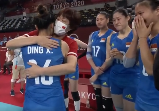 赛后,女排姑娘集体给郎平鞠了一躬,又一个个地拥抱郎平,哭得不能自已。