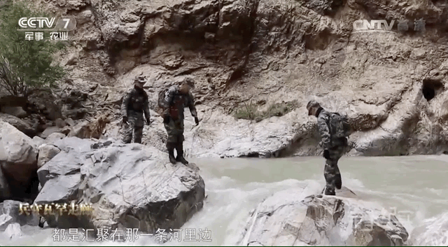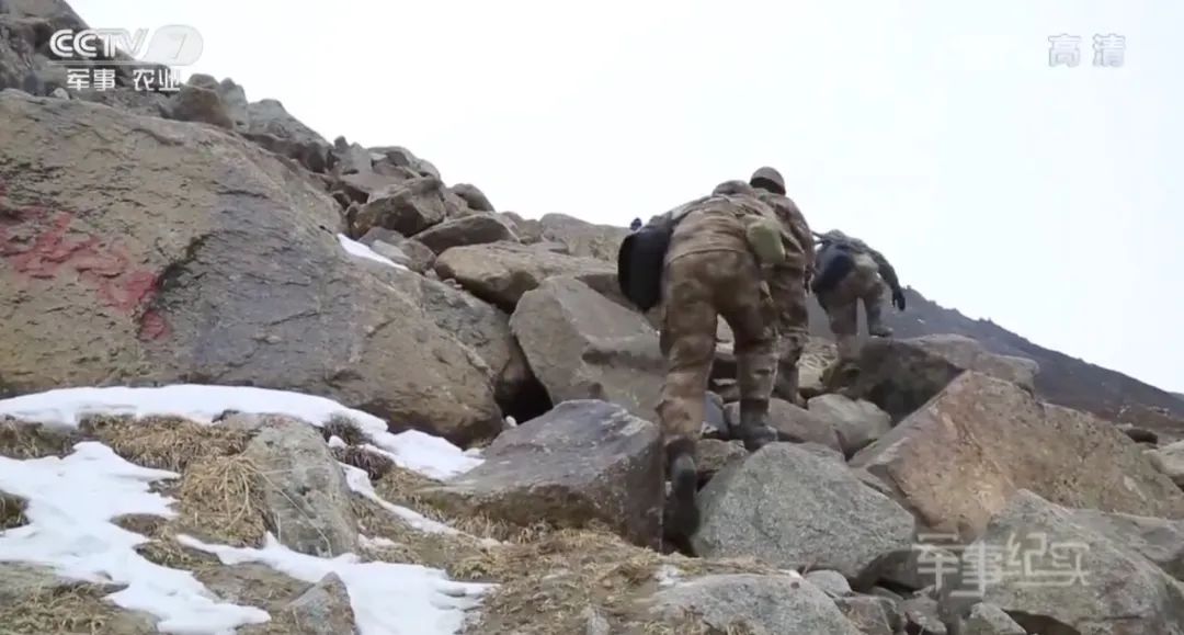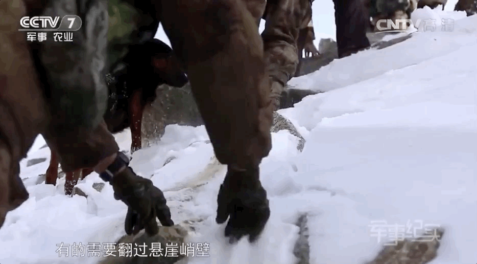 途径冰河和峡谷,一路坡陡路滑,碎石遍布,战士们都会手脚并用地爬过去。