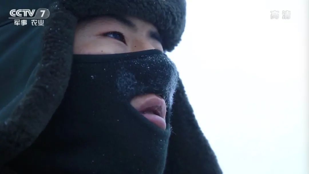 尽管战士们都穿着厚厚的军装,但寒风刺骨,不一会他们身上就挂满了白霜。