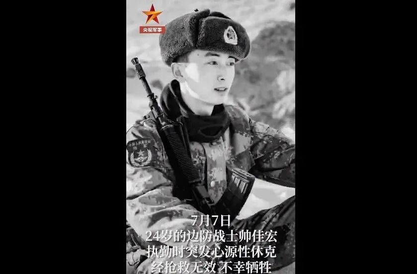 24岁的帅佳宏因突发心源性休克,倒在了执勤哨位上。