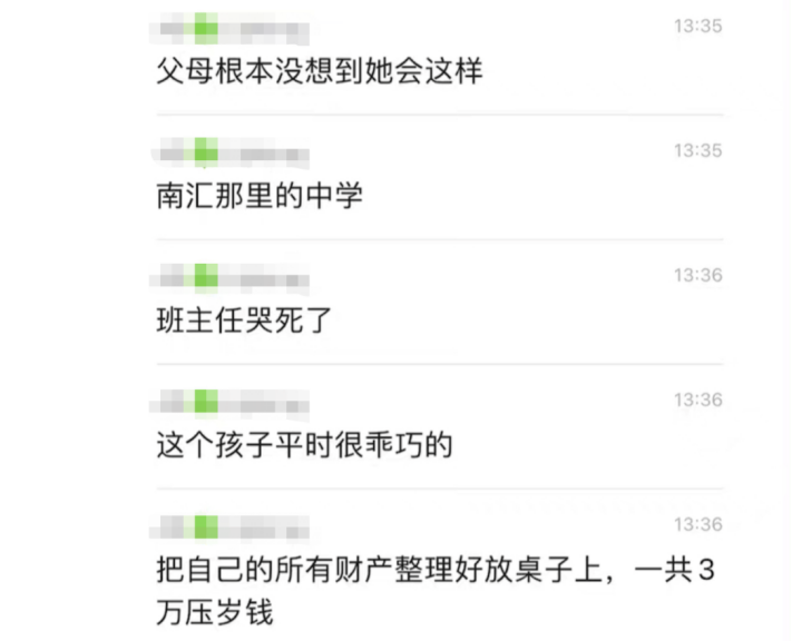 几天前的一个深夜,家人睡去后,女孩静静地在房间整理好她所有的压岁钱,一共3万多块,整整齐齐摆放在书桌上。