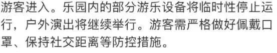 但它并没有关停园内的所有游乐设施,同时表示户外演出将继续进行。