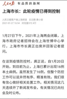 今年1月,上海两会闭幕记者会上,上海市市长龚正说,上海最近一轮疫情已经得到控制。