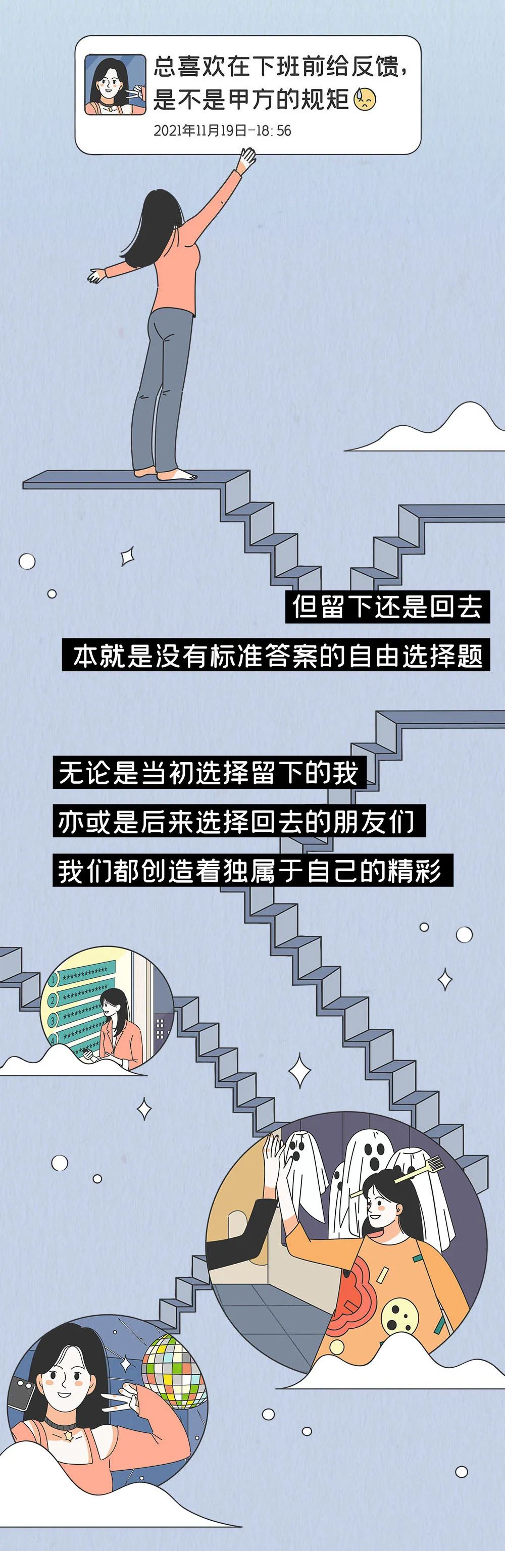 但留下或者回去只是一种选择,它不是人生定音的那一锤,回去了也可以拥有新的征程,回去了也可以再回来闯荡。选择是流动的,每个阶段有每个阶段的境遇和思考。