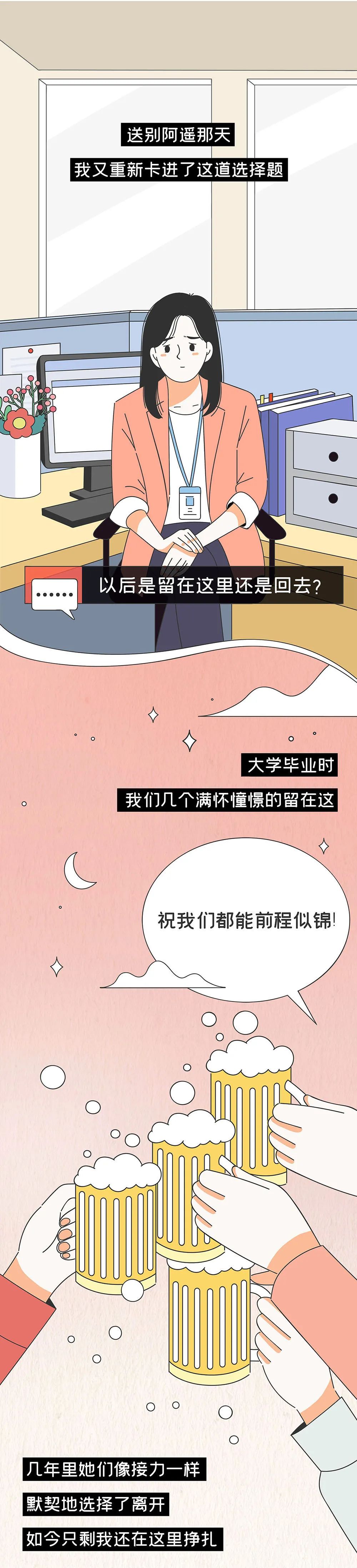 当看多了这种“离开”,又看清了自己几年来的努力对于大城市而言只不过轻如鸿毛,“还要不要继续留下?”“要不要干脆回家算了?”类似的问题就会开始萦绕在心头。
