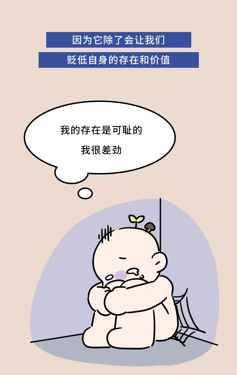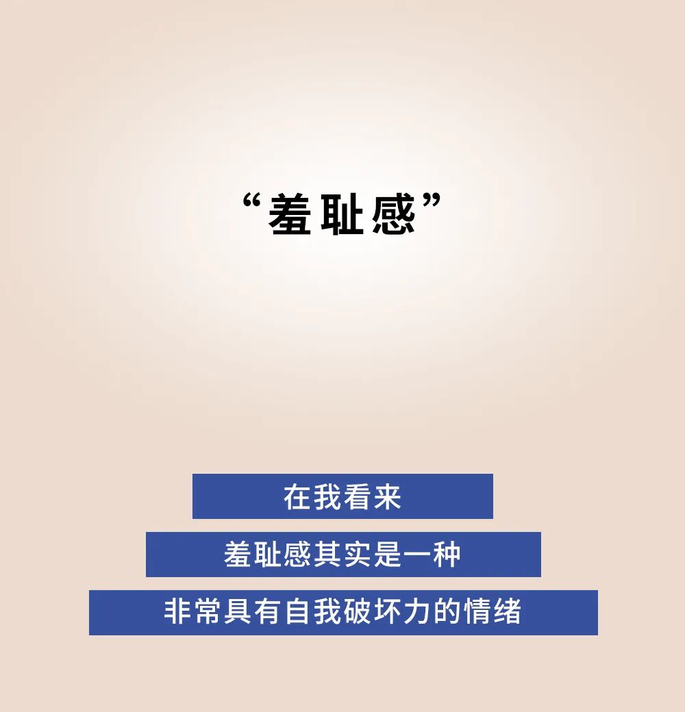 最后 相信我们当中的很多人,从小都是在耻感教育里成长的。 一路走来,一定有过许多个因为挖苦、漠视和羞辱,而自我否定的心碎时刻。 这种羞耻的体验,是非常疼痛,同时也难以