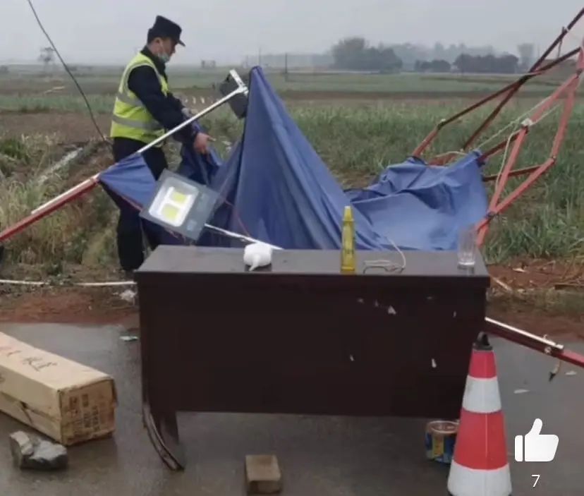 执勤员只能双手拽着帐篷边角,尽力保护好最后的屏障。