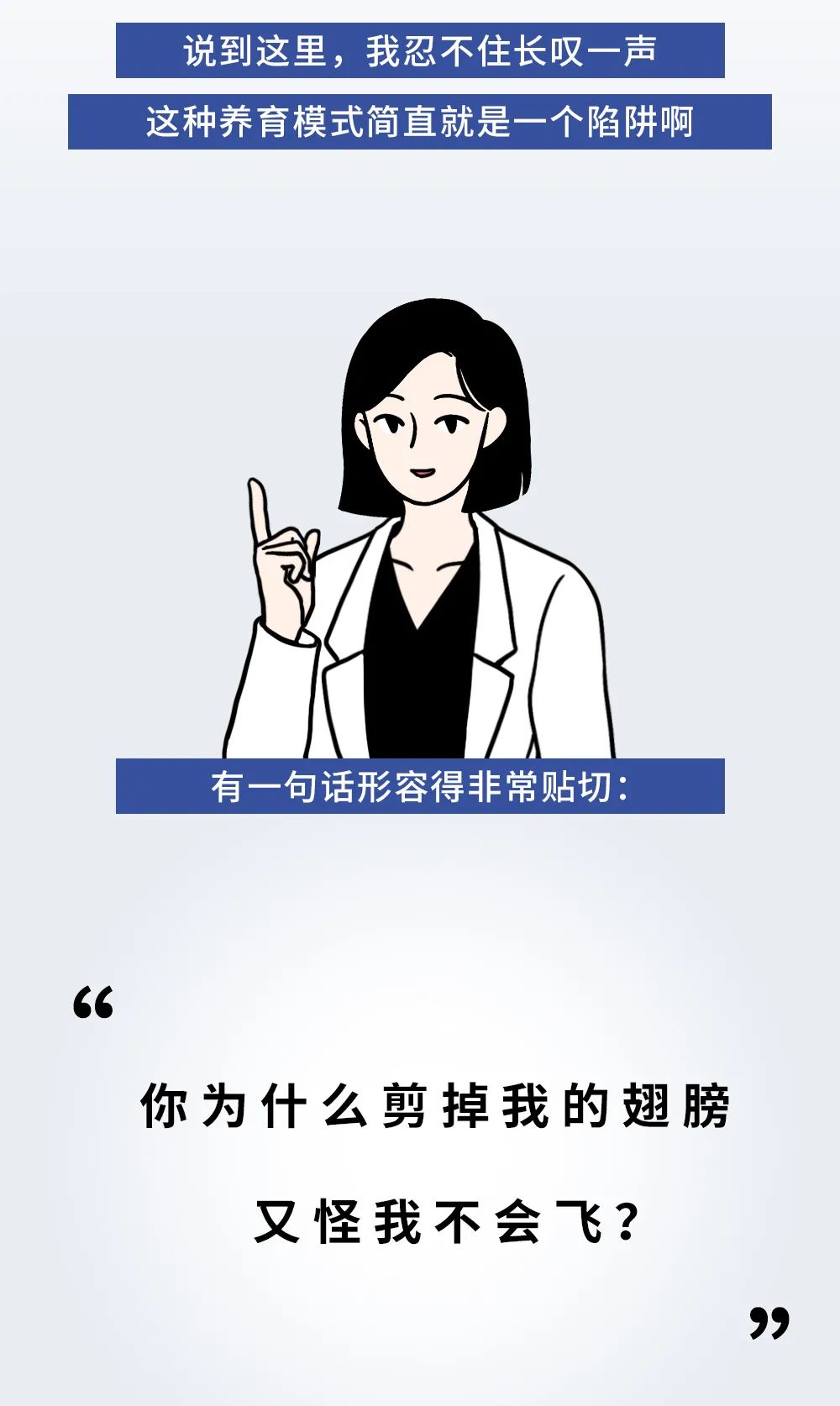 最后 心理咨询师王宇赤老师,发过一条微博: 彻底养废一个孩子,就是不停地指责他啥也不行,再帮他把所有事都做了。 我也深以为然。 很遗憾,很多父母都踏进过这个养育误区 他