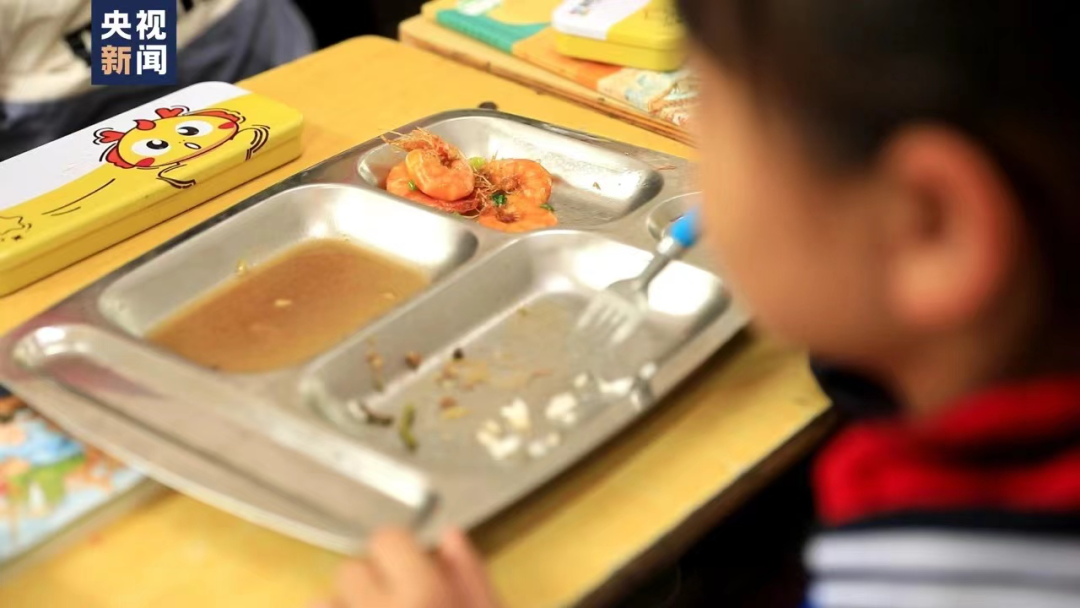 河南二年级女孩张笑笑,在学校吃午餐时,她总是把盘子里的虾挑出来,放在一边。