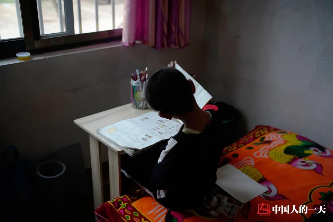 穿刺结束后,周宗松给针眼处贴上胶带固定,调整好点滴流速,确认了妈妈没有不适反应后,他才回到房间里做作业。