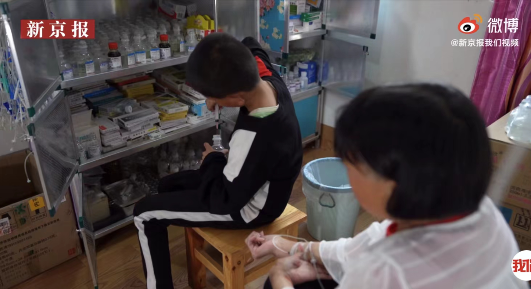 张发翠年轻时曾在村子里做过兽医,患病后她跟着医生学会了打针配药的技能。