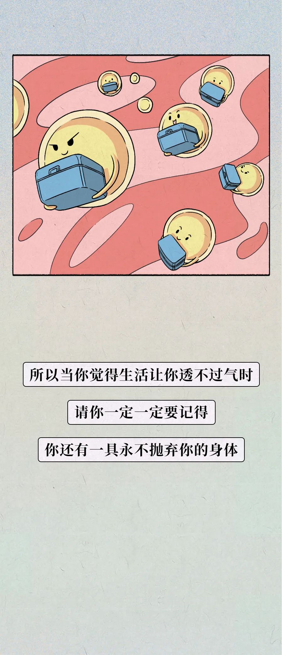 而很多时候我们对待身体的态度,就像捡糖果的小孩,会因为发现地上的糖果而惊喜,却不知糖果就是从你身上掉下来的。所以你的身体那么爱你,要好好珍惜它们哦。