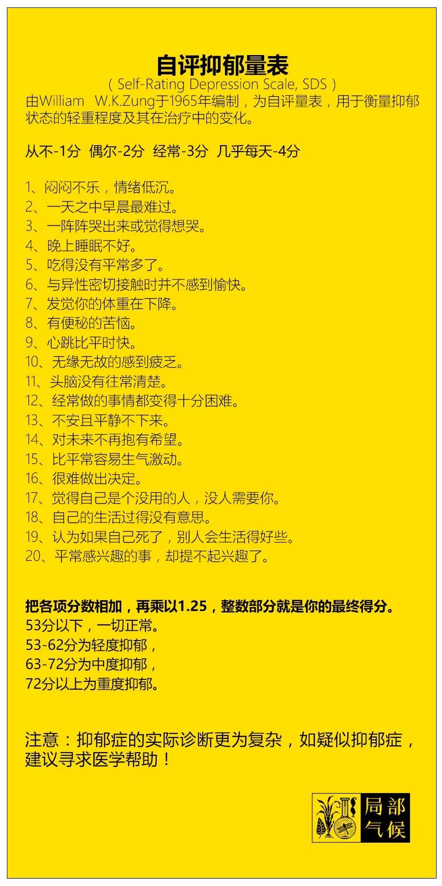 附件1:《自评抑郁量表》