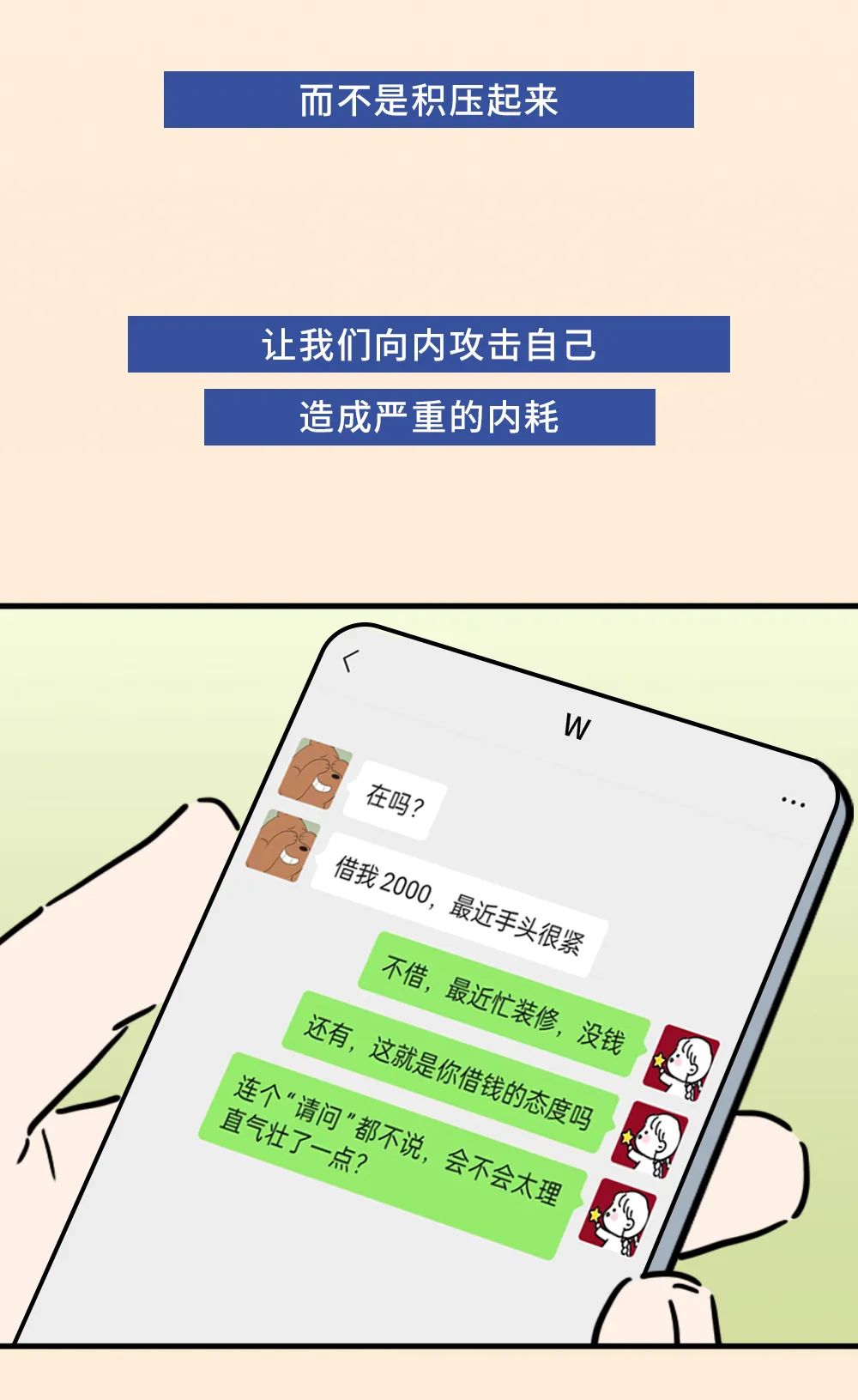 可能很多读者看完漫画,心里还是会很怕,在关系里跟别人起冲突,今天我有两句话想分享给大家,不妨在心里默念——