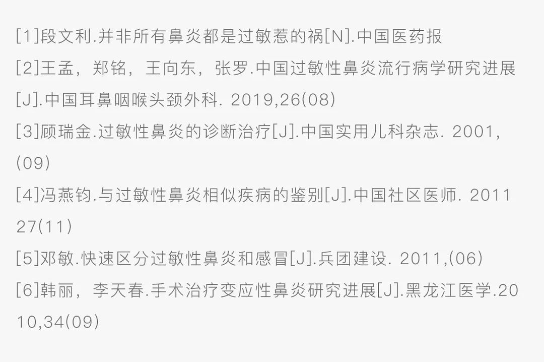 [2]王孟,郑铭,王向东,张罗.中国过敏性鼻炎流行病学研究进展[J].中国耳鼻咽喉头颈外科. 2019,26(08)